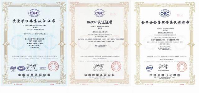 2013年8月19日,公司正式獲得食品安全管理、HACCP管理體系兩個(gè)管理體系的認(rèn)證證書。公司自2012年11月18日開業(yè)以來,在全體干部員工齊心協(xié)力基礎(chǔ)上,已成功通過了質(zhì)量管理體系、食品安全管理體系、HACCP管理體系三個(gè)管理體系認(rèn)證,為產(chǎn)品在全國(guó)各地市場(chǎng)準(zhǔn)入、出口備案及管理水平提升奠定了基礎(chǔ)。
