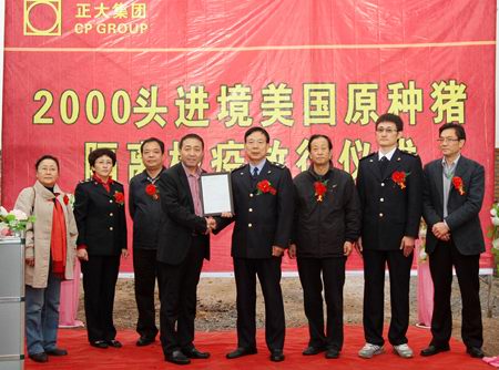 正大集團(tuán)舉行2000頭進(jìn)境美國(guó)原種豬隔離檢疫放行儀式