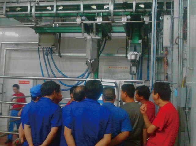 在集團(tuán)于建平***副董事長提出“加快、***提高屠宰線自動化”的號召下,公司積極與具有國際品牌的屠宰設(shè)備廠家進(jìn)行溝通和洽談并簽訂合同。2013年6月15日,自動開骨開膛機(jī)隨著吊車的繩索,緩緩落到洛陽正大院內(nèi)。