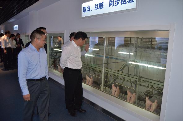 鮑市長一行首先通過參觀廊參觀了公司生產(chǎn)現(xiàn)場。鄭寶振副董事長對洛陽市鮑市長一行蒞臨洛陽正大指導(dǎo)表示歡迎,并對洛陽市政府一直以來對正大集團(tuán)在洛陽項目的支持表示感謝。在公司三樓會議室,喬光斌總經(jīng)理匯報了洛陽正大生產(chǎn)經(jīng)營、項目建設(shè)規(guī)劃、食品安全管理、市場運(yùn)作模式、公司發(fā)展愿景等相關(guān)工作情況;鄭寶振副董事長表示:洛陽正大食品有限公司是集團(tuán)投資建設(shè)的***家生豬屠宰和豬肉深加工項目,集團(tuán)對該項目高度重視,利用正大集團(tuán)優(yōu)勢,圍繞洛陽正大100萬頭生豬屠宰項目,在洛陽地區(qū)打造從玉米種植、飼料加工、良種豬培育、商品豬養(yǎng)殖、屠宰分割、肉制品精深加工、冷鏈物流、連鎖專賣為一體的全產(chǎn)業(yè)鏈發(fā)展模式,確保產(chǎn)品的安全可追溯,下一步要高標(biāo)準(zhǔn)建設(shè)洛陽正大深加工項目,并將在洛陽周邊偃師、宜陽、伊川、孟津等區(qū)域拓展安全豬源養(yǎng)殖基地,洛陽正大食品有限公司向洛陽市民提供安全、健康、營養(yǎng)、美味的正大食品,希望市政府在洛陽正大深加工項目建設(shè)和生豬養(yǎng)殖建設(shè)方面給予支持和幫助。